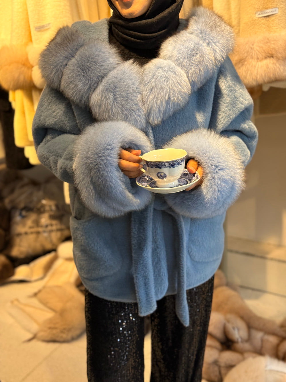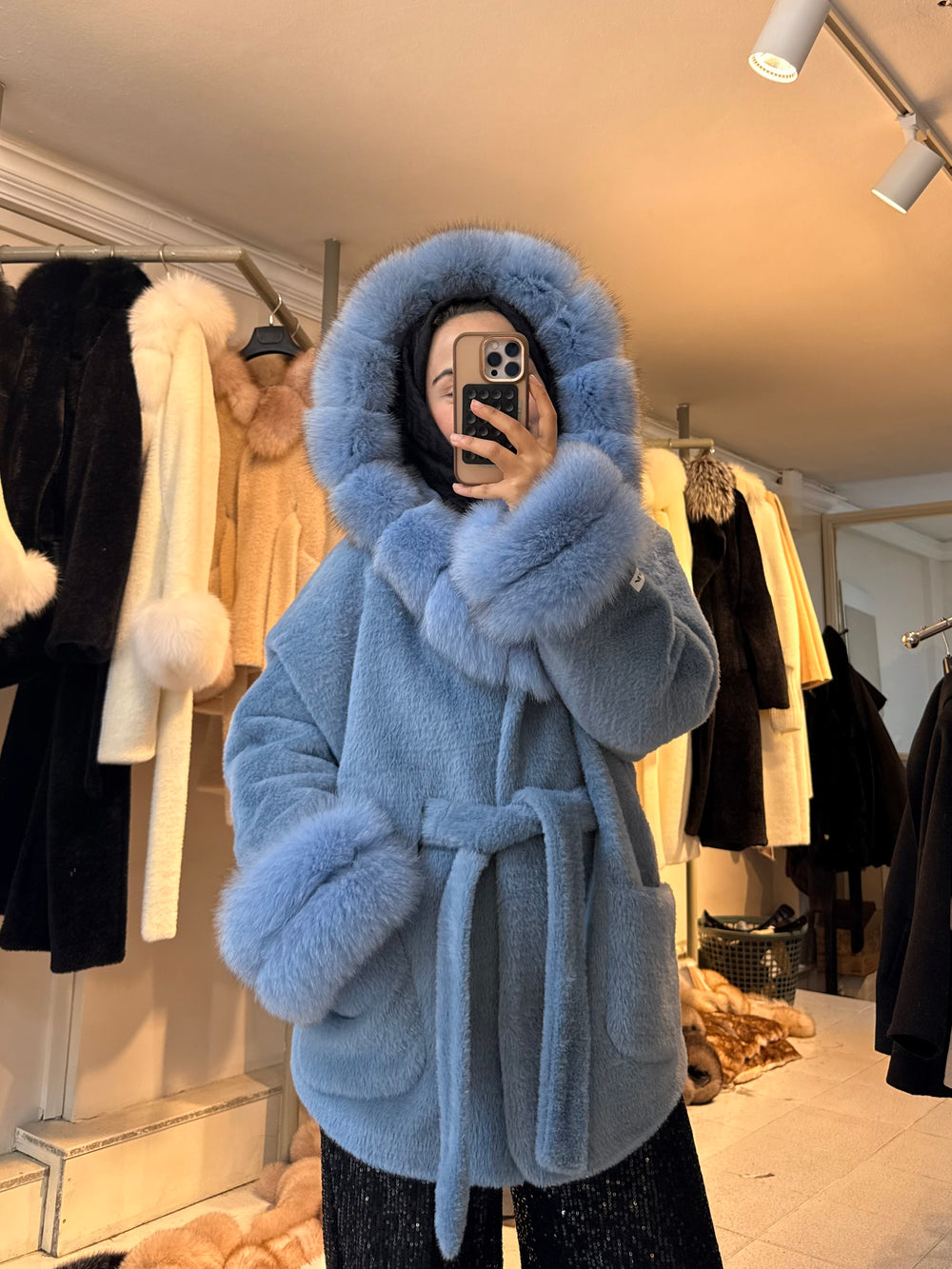Yumuşacık dokusu ve hacimli kürk detaylarıyla kış kombinlerine sofistike bir duruş katıyor. Sessiz ama çok iddialı. ❄️