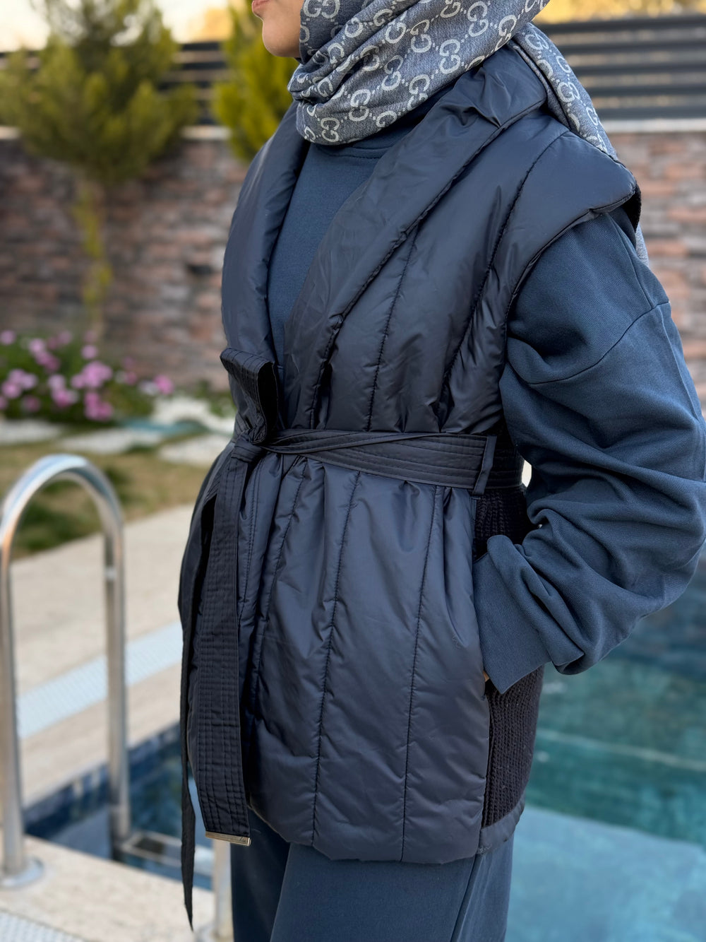 Örgü detaylı şal yakası ve belden kemerli formuyla, şişme montlara sofistike bir yorum getiriyor. Lacivertin zamansız şıklığı, sıcak tutan yapısıyla birleşerek hem güçlü hem zarif bir siluet yaratıyor. Günlük kullanımdan şehir şıklığına kadar her kombinde farkını hissettiren özel bir parça💙