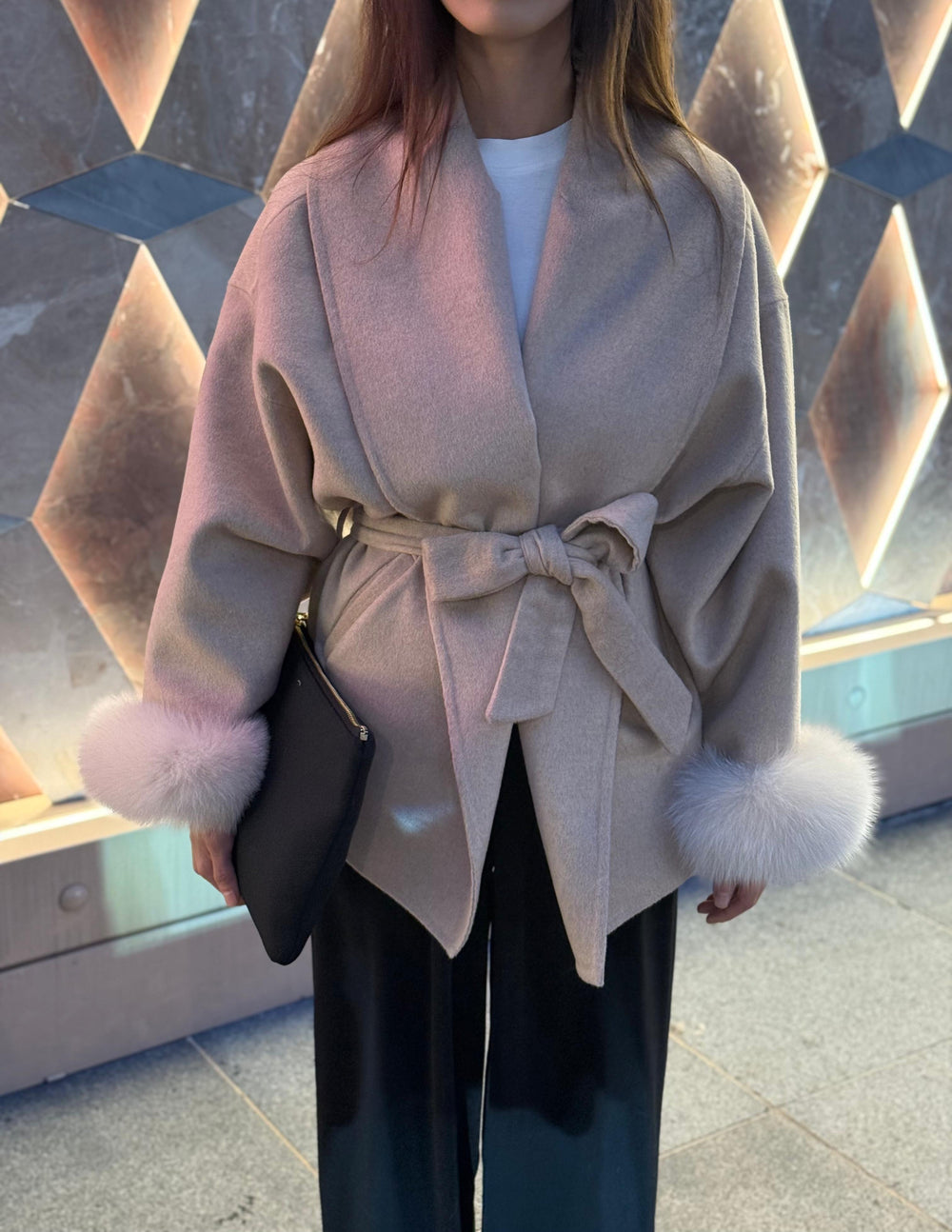 Seréna, soğuk havayı unutturan o zarif anlardan biri... Kürk dokunuşu ve kemerli duruşuyla sessiz ama etkileyici🫶🏻